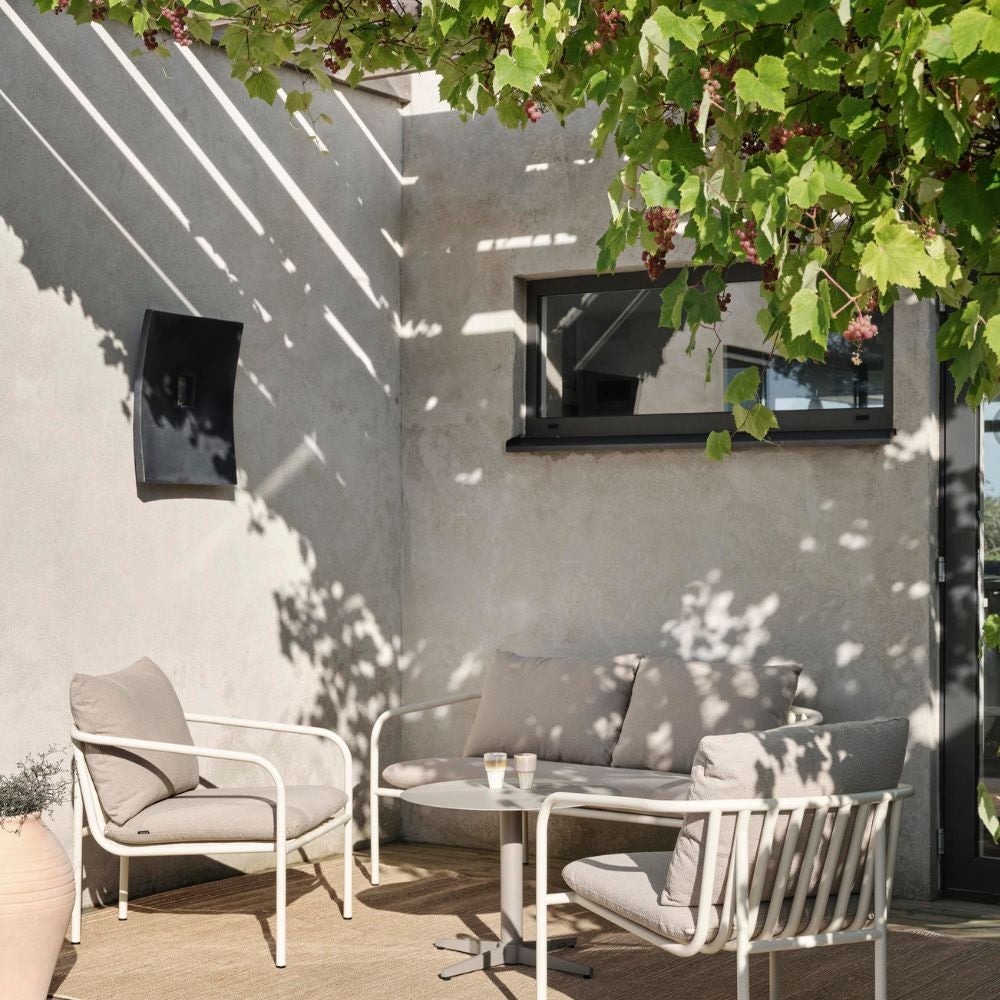 Entdecken Sie das Leben im Freien mit Sicherheit und Stil mit dem Sofa und Sessel von Bendt – geschaffen, um jedem Wetter standzuhalten, ohne dabei seine zeitlose Eleganz zu verlieren. Das luftige Design sorgt nicht nur für ein modernes Ambiente, sondern verbessert auch die Belüftung, sodass Sie auch an heißen Sommertagen eine kühle und angenehme Lounge-Atmosphäre genießen können. Perfekt für entspannte Momente allein oder gemütliche Zusammenkünfte mit Freunden und Familie. Bendt verbindet subtile Eleganz mit unübertroffenem Komfort und hebt Ihre Außenumgebung auf ein neues Niveau. Mit seinem skandinavischen Design verwandelt es Ihren Außenbereich in einen Ort der Harmonie und des Genusses. Erhältlich als Sofa und Sessel in drei stilvollen Farben.