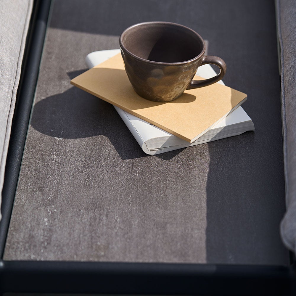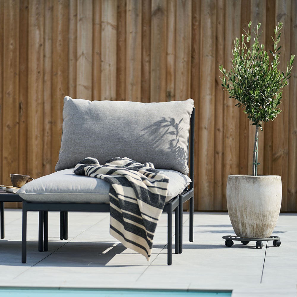 Bolmsö Mittelstück Schwarzes Aluminium/graubeige Olefin-Kissen